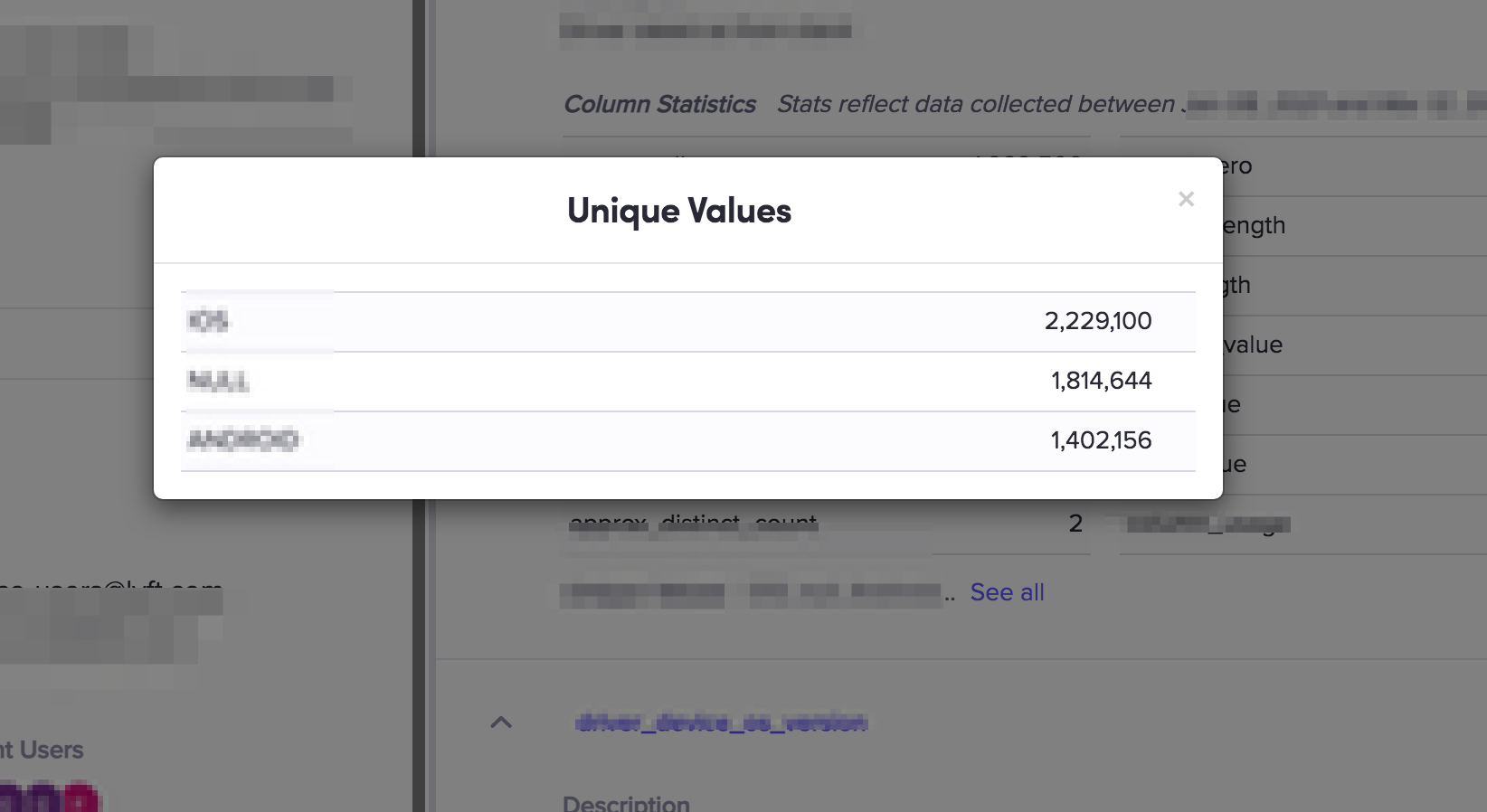 If you have a stat field that is made of a JSON like set of value names and counts, you can show that as a set of “unique values”. You can see an example of this in the following figure:
